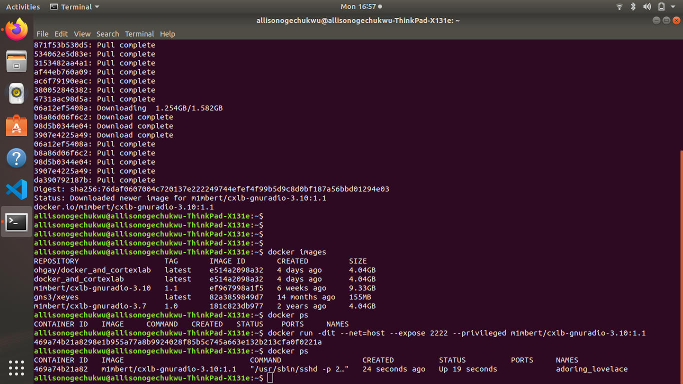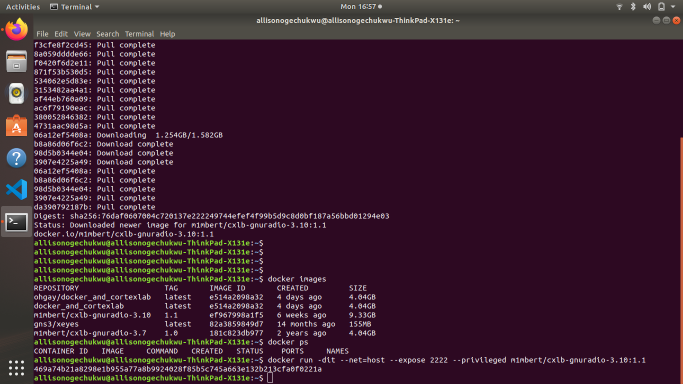 This command downloads the Docker image to your local machine, ensuring you have the necessary environment to run GNU Radio.