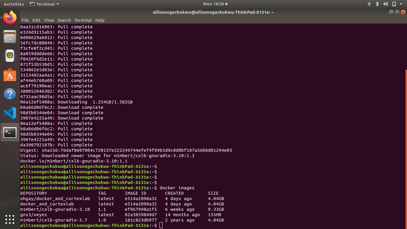 Open a terminal and execute the following command to pull the Docker image of your choice. For example, we’ll use the m1mbert/cxlb-gnuradio-3.10:1.2 image for GNU Radio version 3.10.
